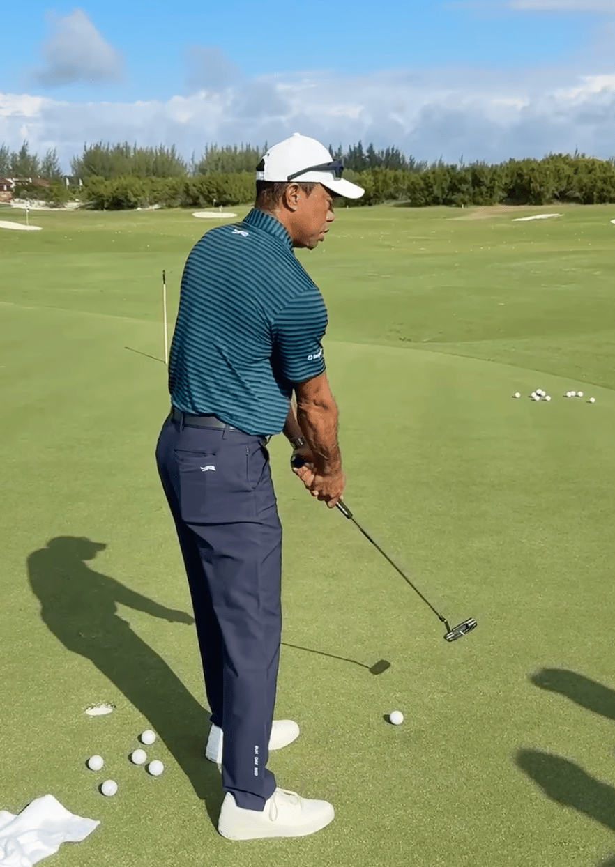Tiger: The putter head moves first. Just like in the golf swingβthe body doesn't move first. The putter head moves first.